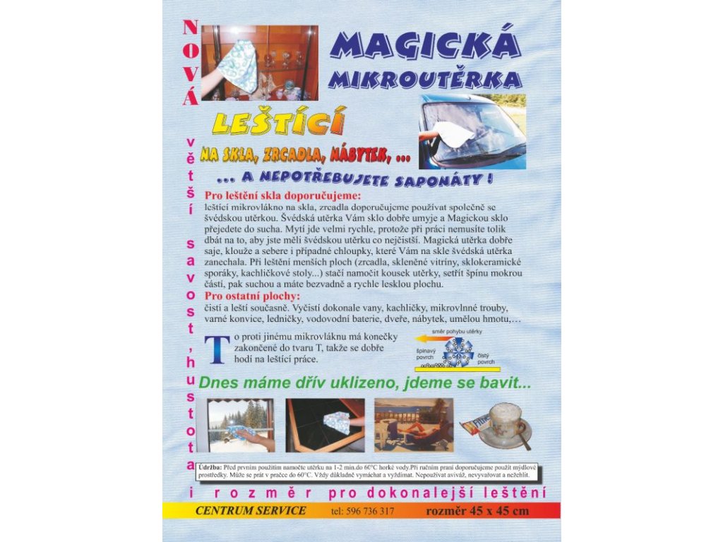 Magická mikroutěrka Centrum Service dokonale vyleští sklo bez chloupků. Oproti jiným leštícím utěrkám je nejpevnější.